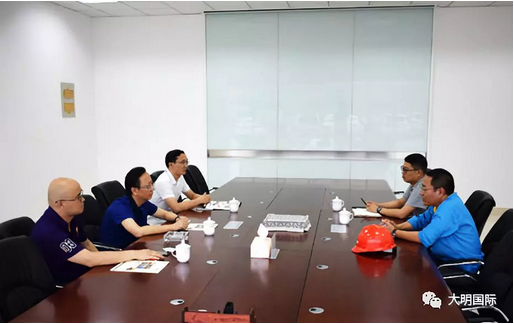 8月22日,马鞍山钢铁股份有限公司销售公司副总经理赵勇一行来访大明泰安加工服务中心,泰安加工中心总经理吕世辉、总经理助理杨顺热情接待。
