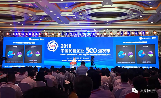8月29日,全国工商联在沈阳发布“2018中国民营企业500强”榜单,大明第七次入选榜单,排名263位,较上次入选时的排名上升了178位。