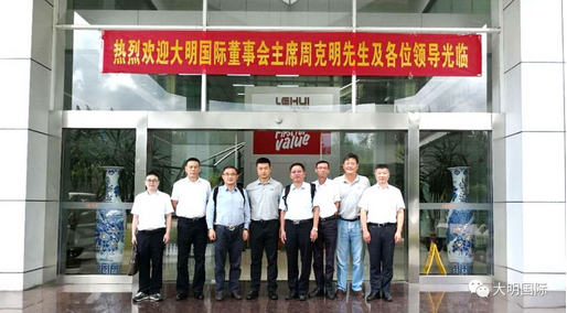 8月29日,大明国际董事会主席周克明、副总裁路平、江苏大明总经理张锋、大明重工总经理王健、大明钣金总经理张必宏、大明杭州加工中心副总经理汤高明一行前往宁波拜访乐惠国际,乐惠国际总经理黄粤宁等热情接待。