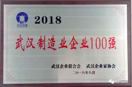 8月30日,湖北省武汉市举行武汉企业百强发布暨“双优”表彰大会,大明湖北加工中心受邀参会,并荣登“2018武汉制造业企业100强”榜单,位列第36位。