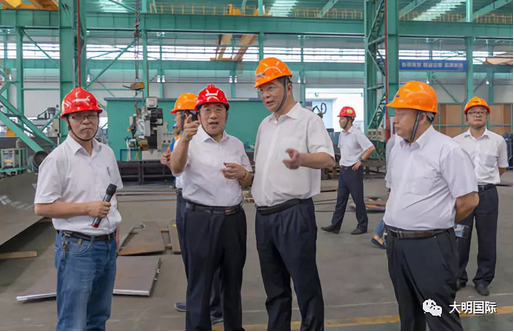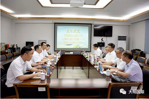 9月5日,河钢集团副总经理王耀彬、河钢销售总公司总经理闫秀军、直销管理部总经理何黔挥、宽厚板公司副总经理谢旭光、南京分公司总经理杨和平一行来访大明,大明国际总裁蒋长虹、副总裁路平、集团碳钢事业部总经理陈宁、副总经理李成、靖江加工中心总经理王小建、副总经理赵建明、大明重工副总经理吴兴生、集团采购总监助理邓梁峰等热情接待。