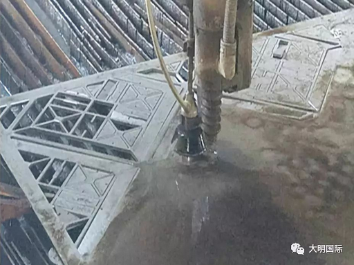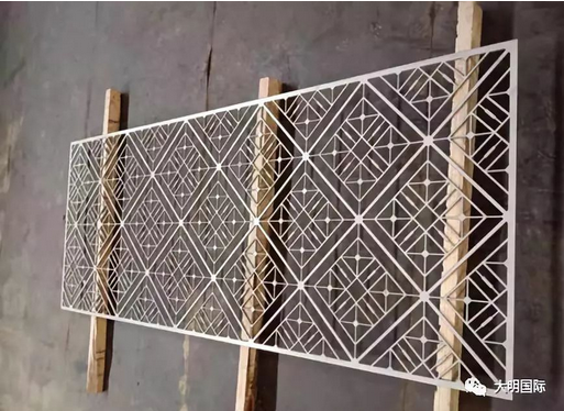 近日,大明天津加工中心承接了某装饰企业的订单,产品主要采用水切割加工。产品厚5mm,长2300mm,宽900mm。由于成品件大部分镂空,最窄处只有2.5mm,尺寸稍有偏差就会割断。加上零件板薄、孔多、筋板小、易变形等,加工难道非常大。为了保证切割后的质量,大明天津加工中心经过调整水切割设备参数、编程人员调整编程方式,首批产品按序、按期加工并交付,受到客户的好评。