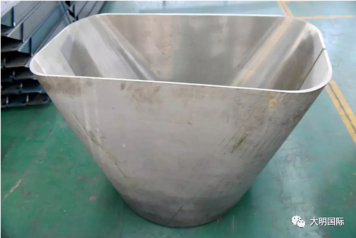 据了解,该配件加工选用了12mm厚度的304L不锈钢,涉及切割、刨边、折弯等工序。其加工难点在于折弯,需预组对协作方能完成,客户后续还将进行焊接组装。经过此次成功合作,该客户对大明的先进设备、加工经验及服务能力均表示非常认可,并希望建立长期的合作关系。