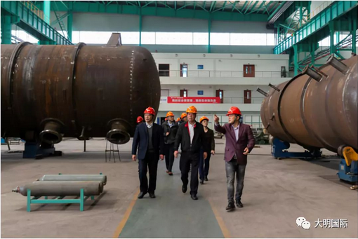 11月13日,西子联合控股有限公司党委书记、董事长王水福、副总裁曹兆根、总工程师颜飞龙,杭州锅炉集团总经理何伟校、副总经理王晓英、总工程师赵剑云一行来访大明,大明国际董事会主席周克明、集团生产技术总监唐中海、碳钢事业部总经理陈宁、江苏大明总经理张锋、大明重工总经理王健、大明精工总经理张必宏、杭州加工中心总经理陈钟炜、靖江加工中心总经理王小建、大明重工总经理助理李群等热情接待。