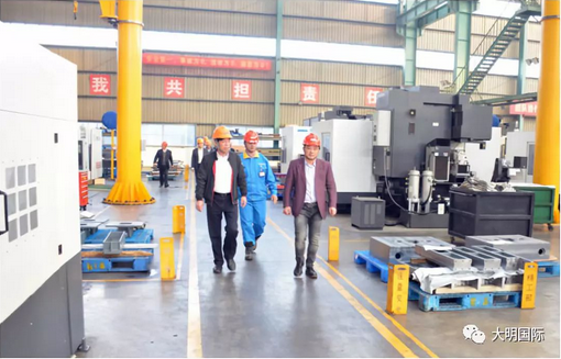 王水福董事长先后参观了大明靖江加工中心、大明重工、江苏大明加工中心和大明精工车间,他对大明的服务模式、加工能力和取得的业绩表示十分赞赏。王水福董事长谈到,西子联合作为一家以装备制造为主,跨行业经营的综合型企业集团,在盾构机、电梯部件、立体车库、锅炉、高压容器等领域有着较高的市场影响力。业务上他希望双方能进一步加强合作,充分发挥大明专业的装备制造业配套平台的优势,共同打造出最具竞争力的产品,共同为众多高端行业、重大工程项目提供更优质的服务。