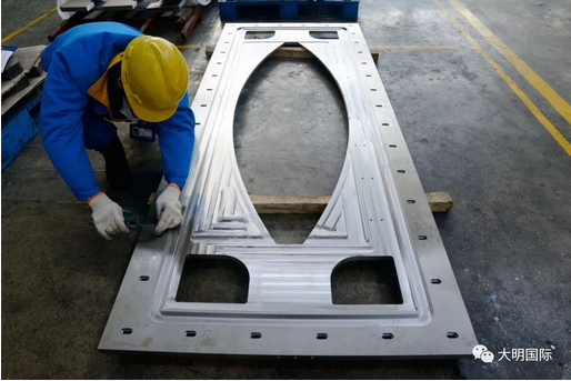 此批部件包括多套真空设备腔体及其相关部件,采用304不锈钢,材料厚度从25mm到35mm,涉及多种规格。产品加工过程包括油磨、等离子切割、矫平、机加工等工序,其中表面处理及矫平质量是客户关注的重点。江苏大明工程服务、生产、技术部门通力协作,攻破技术壁垒、解决了加工难题,保证了质量的同时还做到及时交付,获得客户的好评。