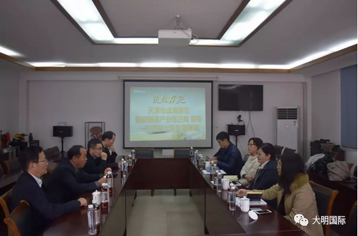 11月22日,天津滨海新区智能制造产业促进局局长金香花、副局长刘雁梅、项目主管李受钊、葛扬来访大明,大明国际董事会主席周克明、副主席邹晓平、总裁蒋长虹等领导热情接待。
