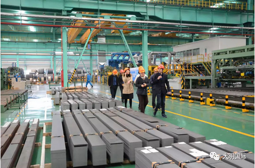 金香花局长一行先后参观了大明靖江加工中心、大明重工,并在集团总部进行座谈交流。在座谈中,金香花局长对于大明的服务模式表示非常赞赏,并了解了大明经营情况与后期发展规划,还详细询问了大明天津加工中心的规划及发展情况。在交流中,集团领导对滨海新区智能制造产业促进局对于大明的关心和支持表示感谢,表达了响应滨海新区政府号召,拼搏发展,为促进地方经济做出更大贡献的信心。