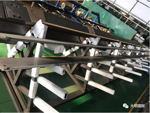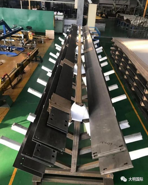 配套轨道制品 近期,天津分为轨道制品企业加工了一批配套产品,客户直接拼装焊接,组装完成后将出口南亚。此批产品为碳钢材质,对折弯加工要求较高,因其加工精度直接影响客户组装精度。客户要求零件加工精度误差必须保证在±1mm以内,最好能达到±0.5mm。 由于零件每种只有一件,无法进行前期的调试,需要首件制作必须成功,再加上零件部分折弯处需要预折,这些原因直接增加了加工难度。最终,通过工艺和生产的努力,采用双机联动折弯,通过上下模具的精密配合保证了零件的精度和R角等参数尺寸,产品获得客户的充分肯定。
