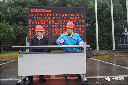 1月3日上午,大明杭州加工中心举行“2019年安全宣誓及安全责任书签订仪式”,在总结上一年安全工作的同时也确定了新一年的安全管理目标。