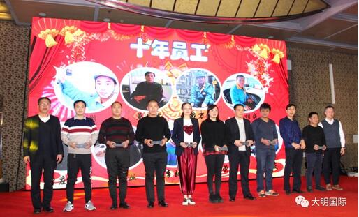 晚会上,还特意为十年工龄的员工颁发了纪念品,大家为这些兢兢业业、忠诚诚恳的大明人送上了最热烈的掌声。