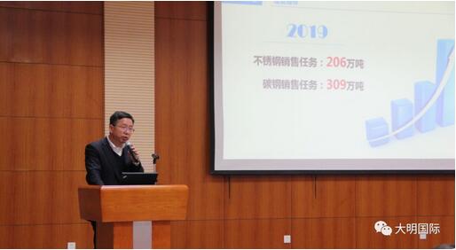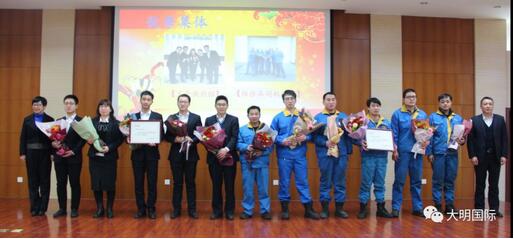 1月19日,大明天津加工中心总结表彰大会在公司会议厅隆重召开,大明集团领导、天津加工中心领导及员工代表共100多参加了大会。会上,各部门负责人对部门工作进行了总结和规划,集团领导对天津加工中心员工在过去的一年付出的努力和取得的成绩给予高度肯定,并勉励全体员工再接再厉,再立新功。