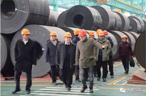 1月28日,宝钢股份武汉钢铁有限公司副总经理周隆云一行来访大明靖江基地,大明国际董事会主席周克明、总裁蒋长虹、副总裁路平、集团碳钢事业部总经理陈宁、大明重工副总经理罗智辉、靖江加工中心总经理助理程汉等热情接待并座谈交流。