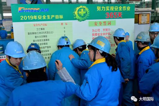 为推进企业安全管理工作,提高全体员工安全意识,江苏大明于2月11日举行了安全生产责任状签署及安全宣誓仪式。江苏大明总经理助理张帆、安全生产顾问太田伸一郎、安保部、生产二部相关领导及员工代表参加了活动。