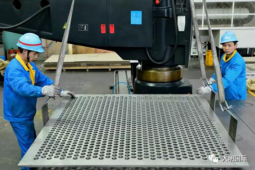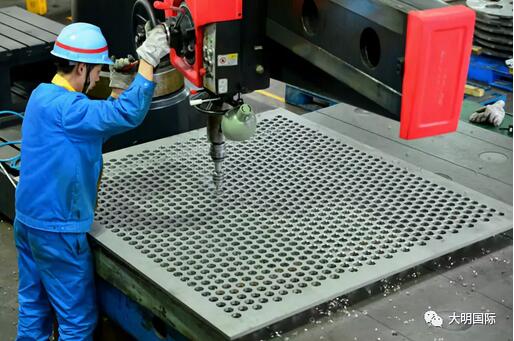 据了解,此产品为厚度16MM的不锈钢管板,加工工艺涉及激光、矫平、机加工等。对于双方的首次合作,客户非常谨慎,要求十分严格,对加工的孔径精度、毛刺去除等的要求都很高。大明工程服务部与精工部紧密沟通,相互协作,并与客户及时沟通解决问题,依靠精良的设备和成熟的加工工艺,按期顺利完成加工。