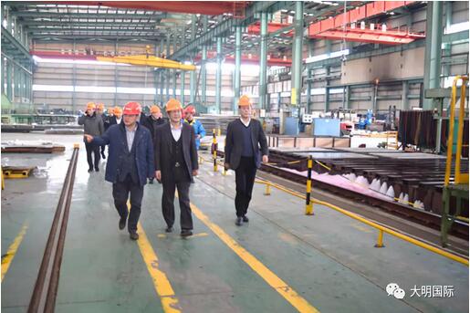 金文海总裁一行先后参观了大明靖江基地、江苏大明加工中心和大明精工,他对于大明在钢铁材料加工领域的实力和能力表示认可。在座谈中,双方各自介绍了企业现状及后期发展规划。双方还在材料加工、物流服务、产品供应链等领域展开了热烈交流,并一致表示在后期要加强交流沟通,以寻求合作契机。