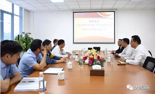 4月18日,宝钢股份武汉钢铁有限公司副总经理何宇城、营销中心总经理郑舟帆、热轧厂副厂长白春雷、营销中心热轧材销售部总经理唐金权、热轧材销售部总监吴沧劲一行来访大明湖北加工中心。大明国际副总裁路平、集团碳钢事业部总经理陈宁、湖北加工中心总经理张俊等热情接待。