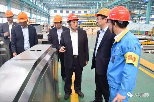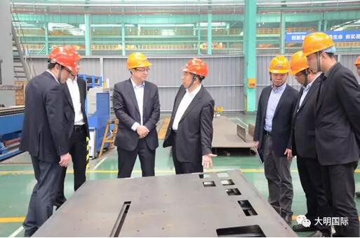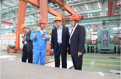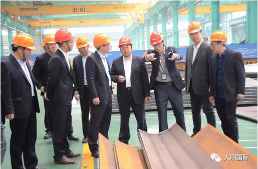 4月18日,河钢集团销售总公司唐钢分公司刘蕴智总经理、热板公司任希和副总经理、南京公司杨和平总经理、唐钢卷板业务营销总监孙继超等领导一行来访大明,大明国际总裁蒋长虹、浙江大明阪和加工中心总经理陈钟炜、集团采购总监助理邓梁峰、靖江加工中心总经理助理程汉等热情接待。
