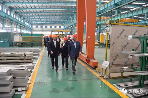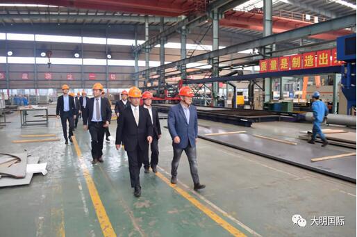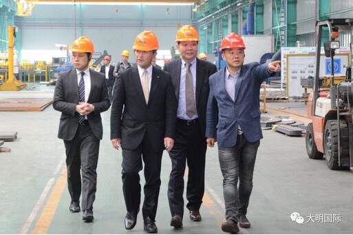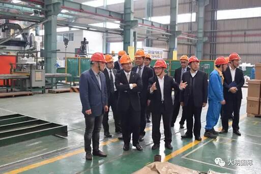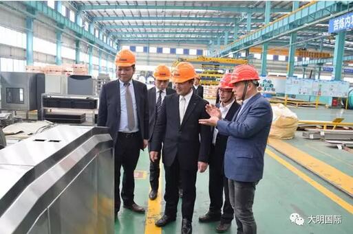 長嶋专务取缔役一行先后参观了大明靖江基地、江苏大明加工中心和大明精工,并在大明总部进行座谈交流。在座谈中,周克明主席介绍了大明的加工服务模式以及后期规划,長嶋专务取缔役对于大明在加工领域取得的成绩表示赞赏。双方还就目前合资公司嘉兴加工中心的建设进展及发展规划展开了深入讨论,并表示在后期的合作中将充分发挥阪和专业技术和服务网络优势,结合大明资源、服务模式,共同深入开发业务,为客户提供更优质的产品和服务。