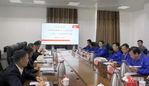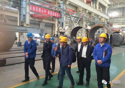 4月22-23日,大明国际董事会主席周克明率队前往兰州,拜访了兰州兰石重型装备股份有限公司和兰州兰石换热设备有限公司,受到兰石集团副总经理、兰石重装董事长张璞临、兰石换热执行董事、总经理苏斯君等领导的热情接待,并进行了深入的交流。大明国际副总裁路平、江苏大明总经理张锋、大明重工总经理王健、集团不锈钢事业部总经理倪晨等随同拜访。