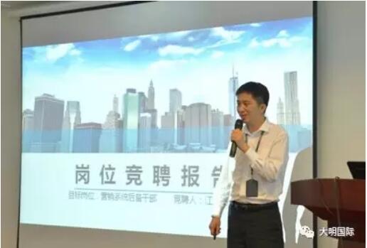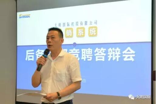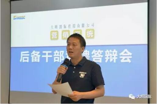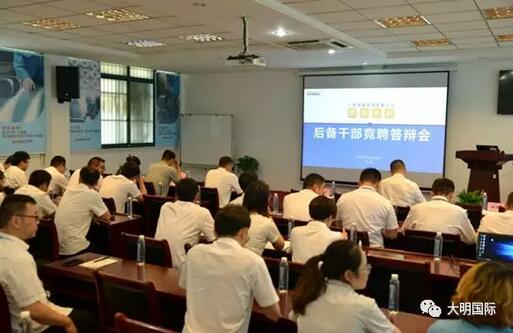 5月25日下午,在大明集团总部B楼115会议室,举行了营销系统后备干部竞聘首场答辩会,54名竞聘者将分为三批,通过PPT演讲和现场答辩,角逐营销系统10名主管和5名部长级后备人选的职位。大明国际副总裁路平、集团人事行政总监张必宏、不锈钢事业部总经理倪晨、营销管理部总经理张理红、采购总监助理邓梁峰、人力资源部部长董伟锋等作为评委出席。