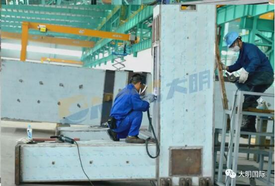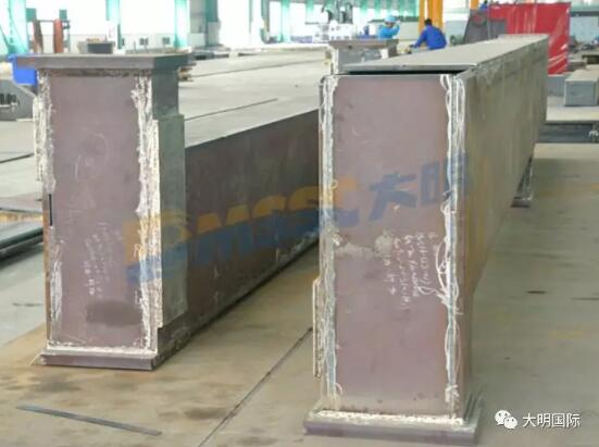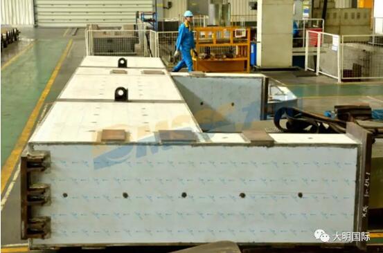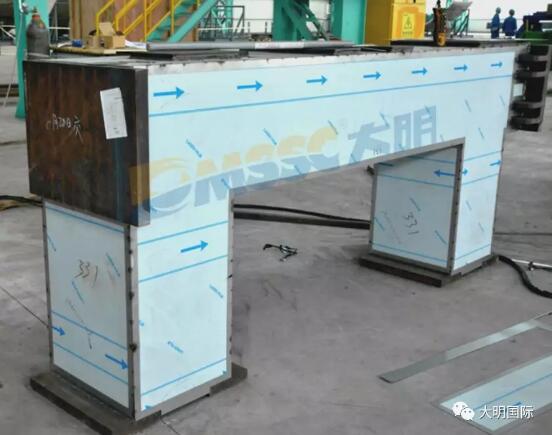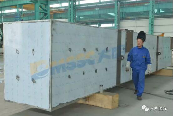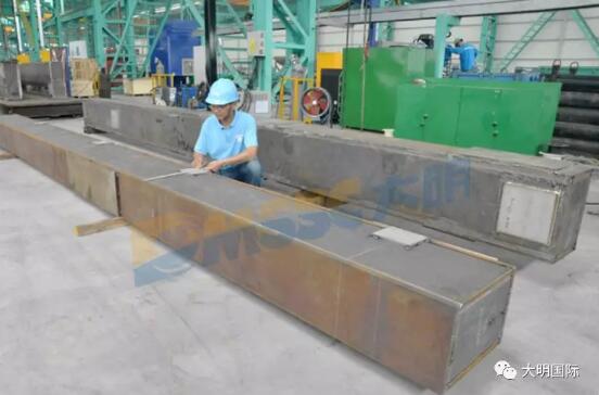 该造纸设备配套项目为采用碳钢及不锈钢材质制作的两条生产线,分别将于7月中下旬、8月中旬交付。订单涉及的材料厚度从1.5mm-50mm,共计20多种规格。加工涉及多工艺切割、刨边、折弯、焊接、热处理、机加工等工序,客户对产品整体尺寸、表面质量等要求都很高。在加工中,碳钢部分由大明靖江加工中心下料,不锈钢部分由江苏大明下料,焊接由精工和两岸三地项目组共同执行,机加工部分由大明重工执行。其中焊接部分第一批10件,总重79吨,单个部件最大达17吨。该订单交期较紧,同时也是大明精工首次承接该类配套项目,经过业务、技术和生产部门评审,并与客户详细沟通,确定了加工方案。加工中,大明全程质量跟踪,对外形、结构稳定性等重点关注,获得了客户的认可。