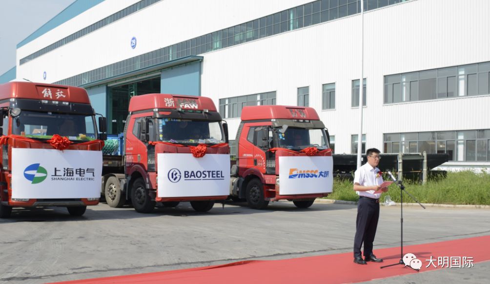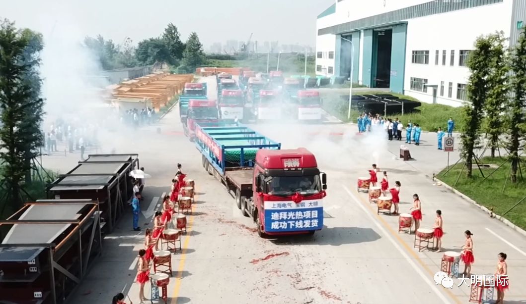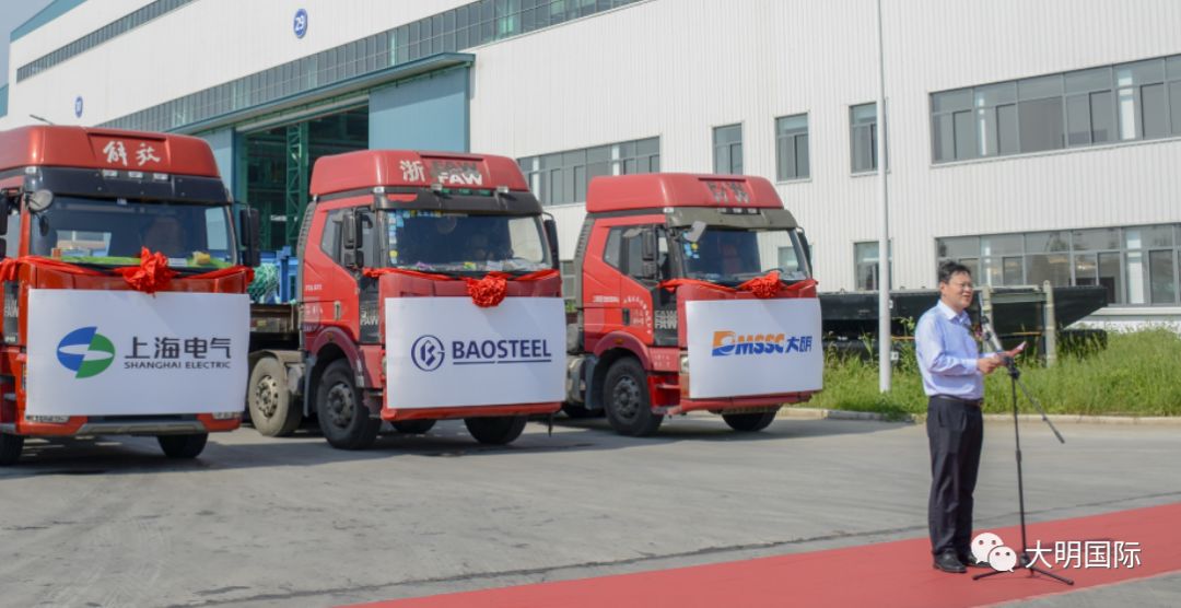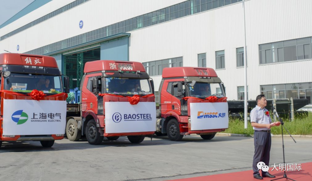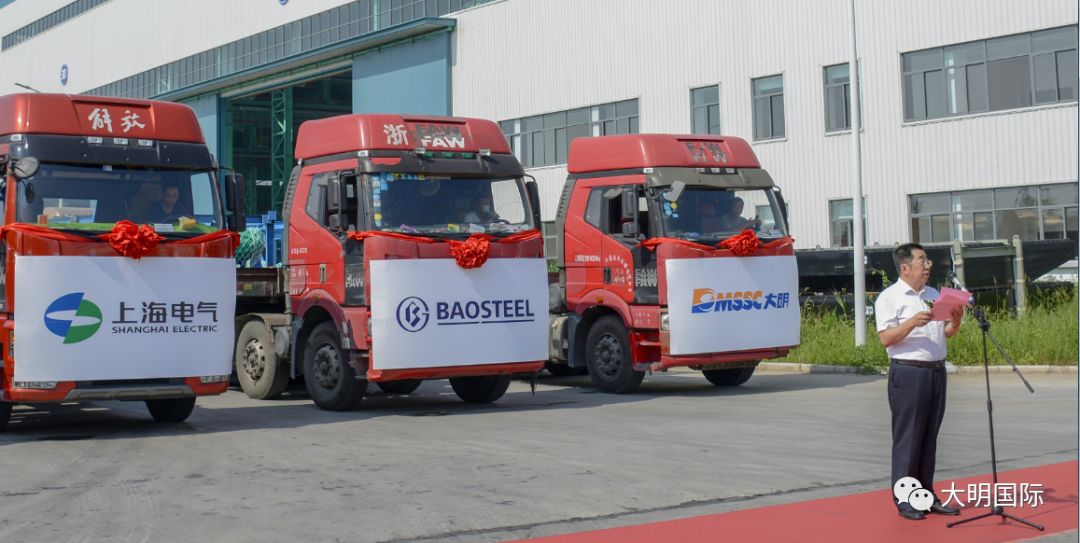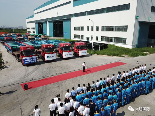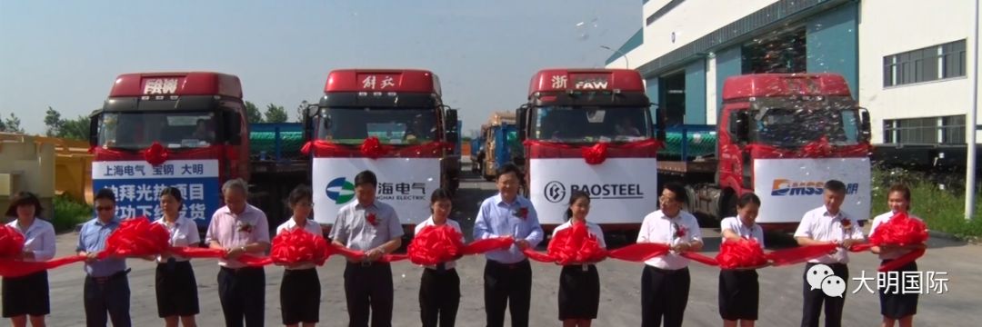 7月25日上午,在位于大明靖江基地的大明重工6号厂房前,为上海电气迪拜700MW光热和250MW光伏太阳能电站项目配套的光热储罐预制钢板首批发货。来自上海电气、宝钢股份、大明国际的领导及大明重工员工代表参加了仪式。