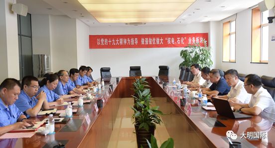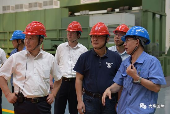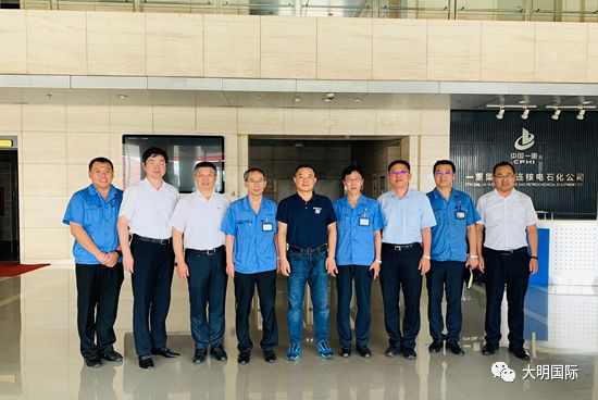 2019年7月29日,大明国际董事会主席周克明、副总裁路平、大明重工总经理王健、副总经理邵星慧等赴大连一重集团核电石化公司参观学习,受到一重大连核电石化公司执行董事、党委书记刘恩清,总经理、党委副书记郑宝峰,总会计师、党委委员刘金红,销售公司总经理李金连,物资采购中心总经理范维河、财务部副总经理康艳茹的热情欢迎和接待。