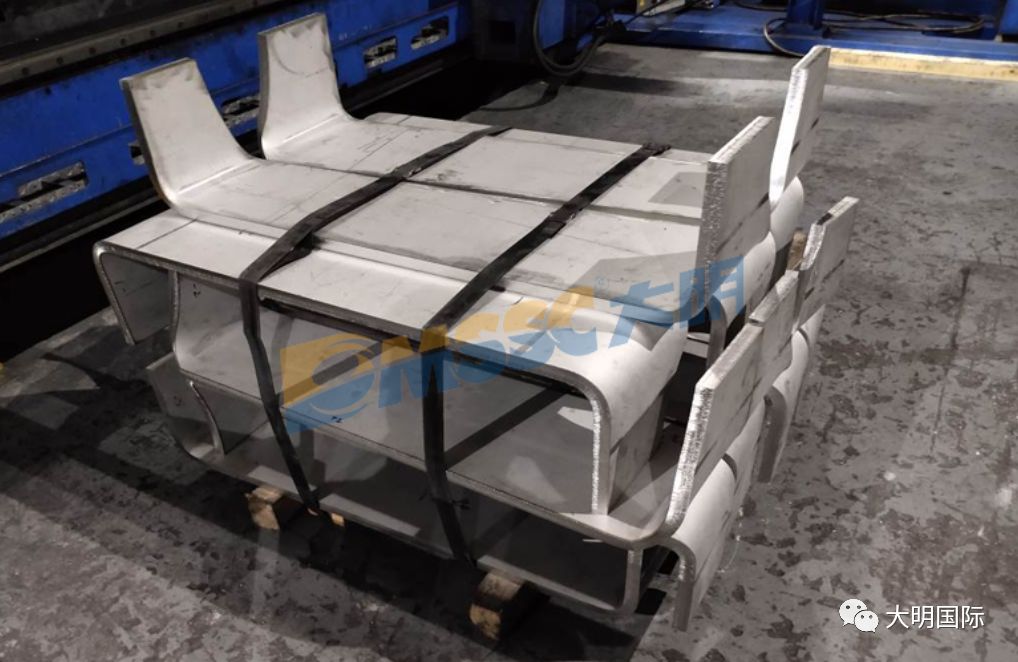 此批产品板厚14-20mm,材质为30408不锈钢,产品需要经过开平、切割、折弯等多道工序。大明杭州加工中心使用日本田中6000W激光切割设备来保证切割精度及端面质量,在折弯工艺上选用黄锻2000T折弯设备来保证产品的精度及折弯角度,凭借精良的加工,受到客户的认可。