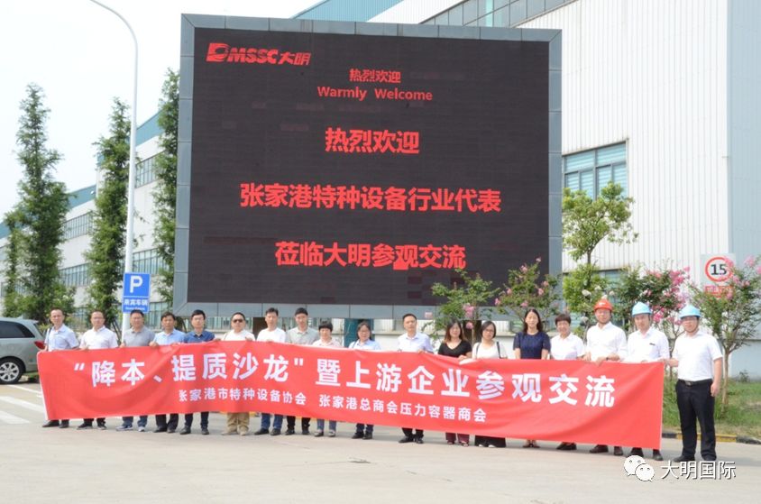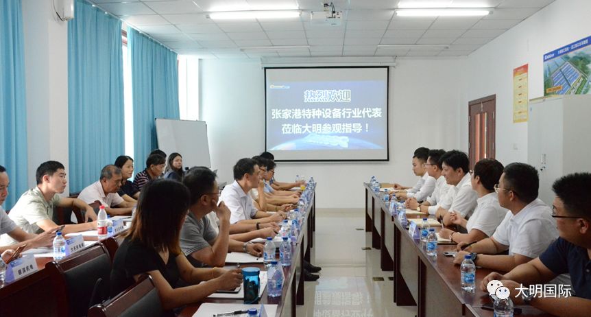 张家港特种设备行业代表一行参观了大明靖江基地,对大明从优质钢铁材料供应到简单加工、再到深加工配套的“一站式”服务模式进行了深入了解。座谈会中,代表详细了解到大明公司目前的设备、加工能力、运营模式和后期规划,对大明在金属加工领域的实力和能力表示认可,寻求合作机会,实现共赢局面。其中海陆重工现场表示后期将与大明增强交流,携手合作,为客户提供更好的产品与服务。