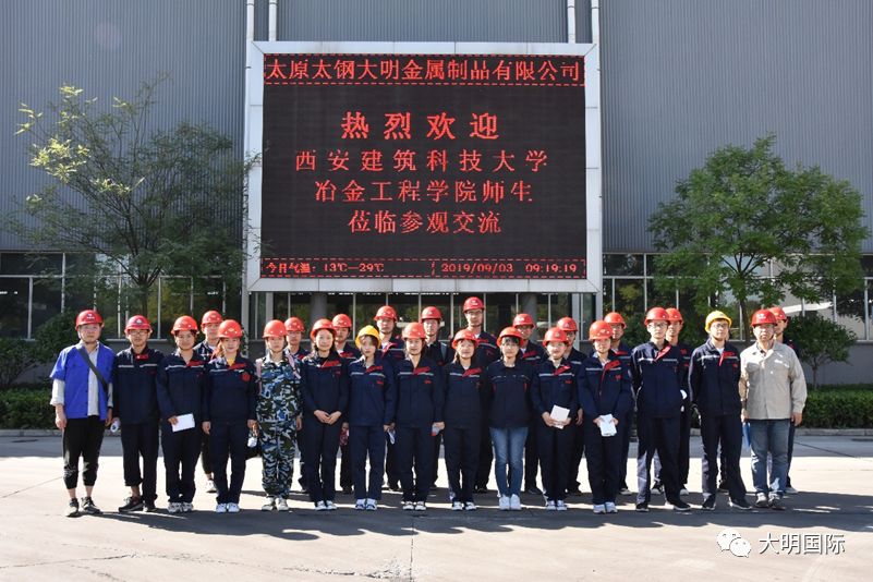 西安建筑科技大学现为“国家建设高水平大学项目”和“中西部高校基础能力建设工程”的实施院校,陕西省重点建设的高水平大学,教育部、陕西省和住房城乡建设部共建高校。通过此次参观学习交流,不仅使在校学生了解企业的实际运营情况,也增进了大明太原加工中心与西安建筑科技大学冶金工程学院的互相了解。