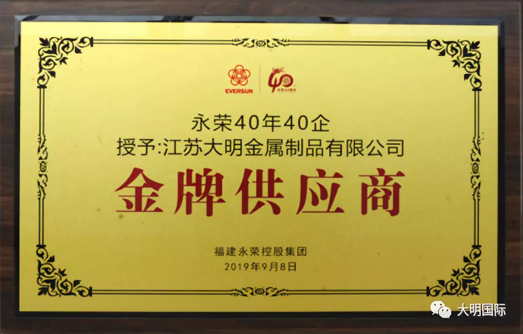 此次获颁“金牌供应商”,表明了永荣对江苏大明所提供服务的肯定。未来,双方将进一步加深合作,实现优势互补,共同为终端客户提供更好的服务。