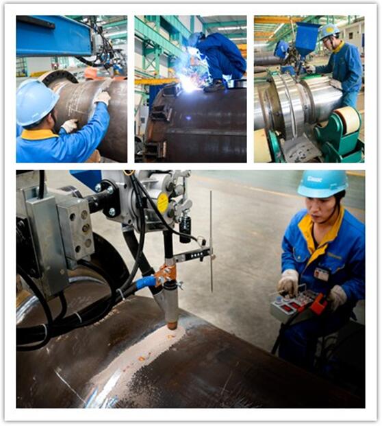 此次配套生产的旋风分离器部件,主要由裙座、封头、筒体,法兰以及内件组成。产品加工过程中,结构复杂、部件种类多、加工工艺复杂、产品配套精度高等是道道难题。比如仅法兰就有端头法兰和人孔法兰,人孔法兰又存在2种规格,法兰焊接时又需采用3种不同的焊接方式进行配套。为按期交付终端客户,大明重工由生产管理部牵头成立了专项小组,生产二部、技术部相互配合,探讨制定了缜密的技术方案和合理的生产计划。通过道道流程的严格把关,最终保证了加工项目的顺利进行,获得客户的高度赞扬。