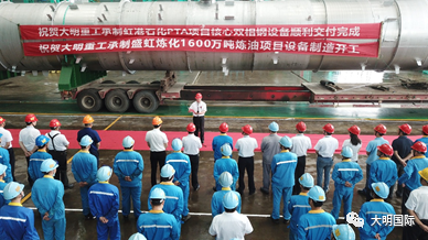 6月23日,虹港石化PTA双相钢核心塔器发货及盛虹炼化1600万炼油项目启动仪式在大明重工圆满举行。