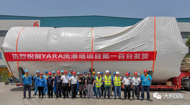 6月4日,大明重工—雅苒洗涤塔项目迎来了第一百台发货的重要节点。