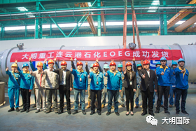 3月21日,大明重工承制的连云港石化EOEG装置开始首批发货。该项目共包括38台设备,总重量近2400吨,其中不锈钢设备14台、复合板设备20台、碳钢设备2台、换热器2台,设备直径最大6.6米,长度最大55米。
