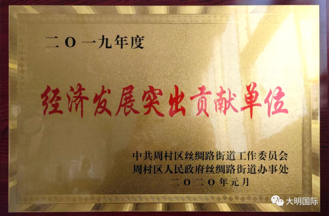 1月18日,山东省淄博市周村区丝绸路街道办事处召开了2019年度总结表彰大会,大会发布了《2019年度突出贡献单位和个人名单》,大明淄博加工中心荣获经济发展突出贡献单位。