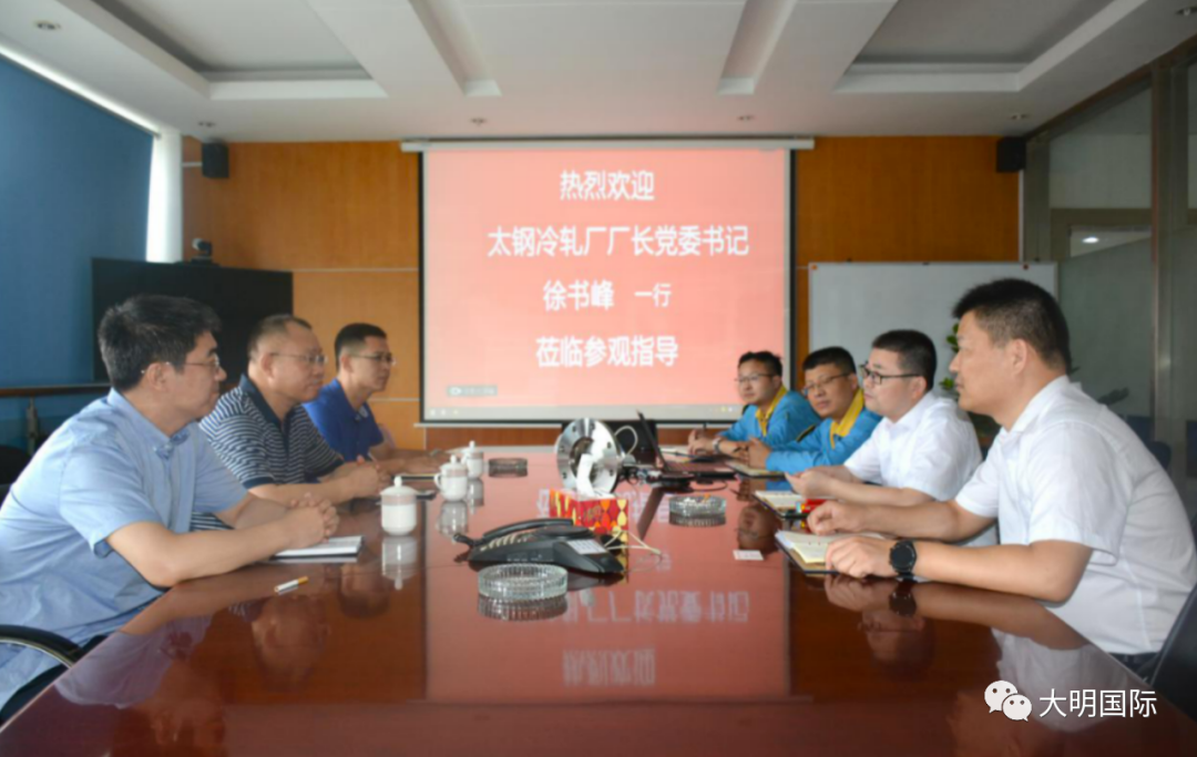 徐书峰厂长对大明杭州加工中心的设备、产能、管理等进行了深入了解,他对杭州加工中心的市场定位和服务能力表示非常赞赏。大明和太钢合作关系十分紧密,此次徐书峰厂长再次到访,还就前期合作及下游客户的需求进行了深入沟通。大明杭州加工中心通过客户案例,针对性地介绍了客户的需求及相关技术问题,得到了太钢专家的专业解答。双方表示,将继续保持密切的交流沟通,携手为广大客户提供更优质的产品与服务,实现更多双赢。