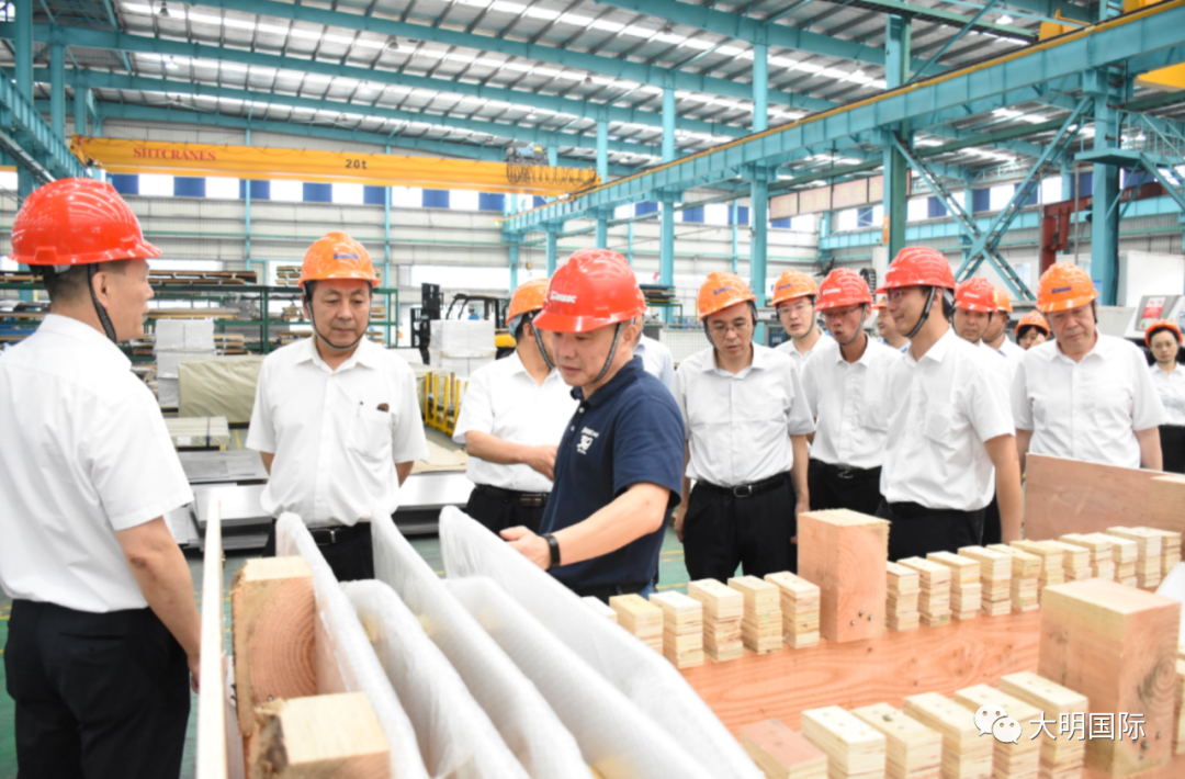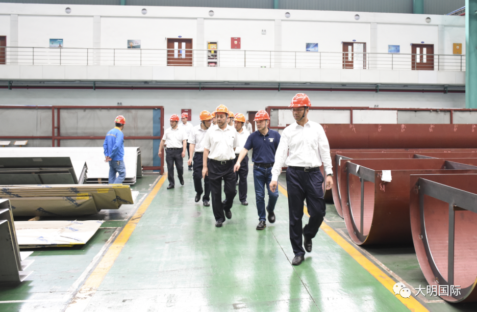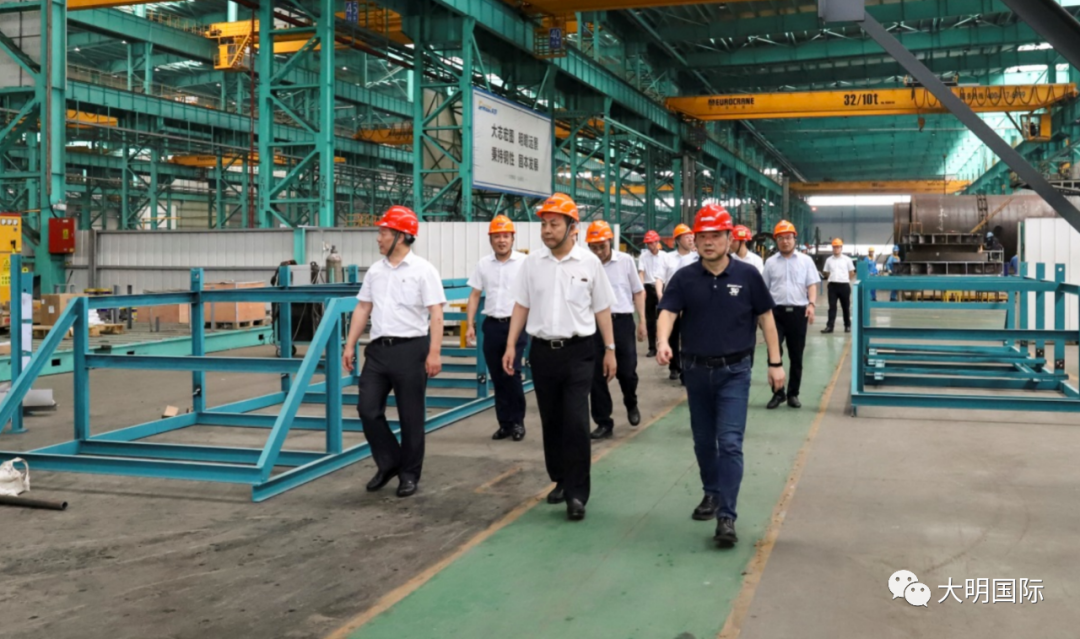 高祥明董事长一行在周克明主席的陪同下先后参观了江苏大明、大明精工、靖江加工中心和大明重工各工厂,对大明集团的加工平台建设和加工服务能力给予高度评价,认为大明国际的发展模式代表了一种先进生产力的方向。在随后的座谈交流中,双方围绕钢铁行业及制造业宏观形势及发展趋势、不锈钢加工服务等主题进行了深入交流探讨。周克明主席表示,大明将全力以赴配合好太钢做好客户服务工作。双方均表示将不断深化业务合作,发挥各自优势,以更加优质的产品和工程服务能力拓展更多的高端客户、重点项目、重大工程。