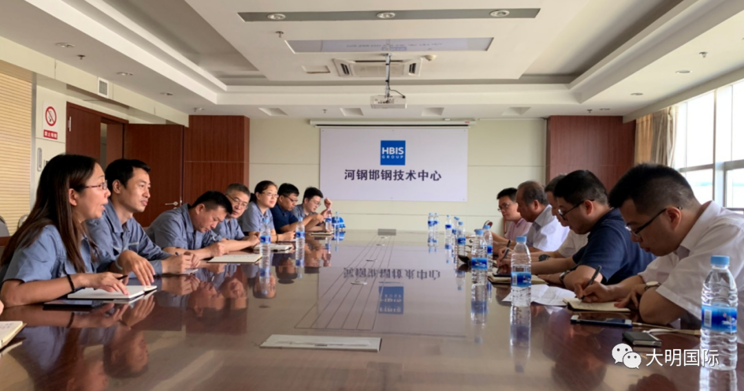 在座谈中,双方首先对大明与河钢的战略合作签订表示祝贺,并就后期相关合作细节展开了深层次的探讨。宁成波副总经理详细介绍了邯钢当前耐磨卷产品的基本情况,陈子刚主任重点介绍了定制开发的高强度粮食加工用耐磨钢、耐腐蚀(如餐厨垃圾转运车)、耐高温环境下耐磨钢的研发进展情况。唐中海总工谈及邯钢产品的加工性能以及终端使用情况时表示,邯钢产品凭借其优异的加工及使用性能得到了众多客户的认可,这点为更多更优邯钢产品的下游推广应用奠定了坚实的基础。双方表示将各自发挥在材料及加工配套方面的优势,为更广泛的终端用户提供更多高质量的产品与服务。