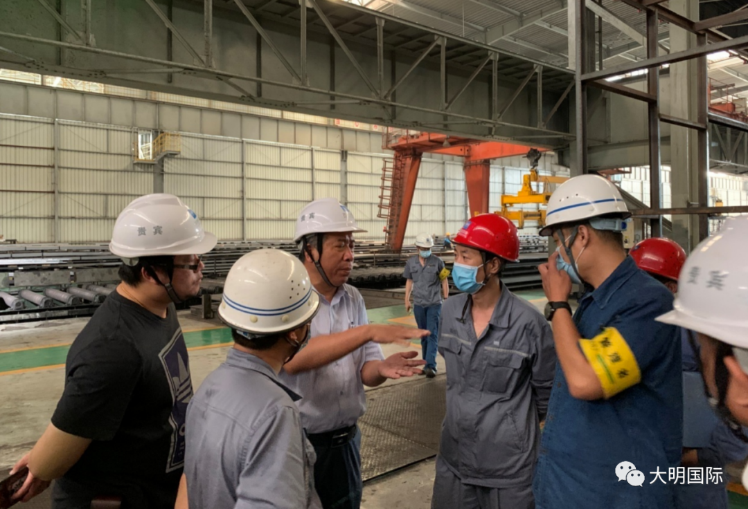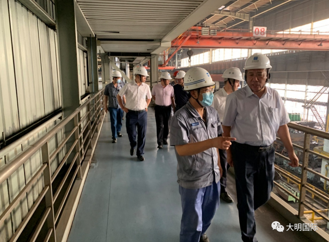 大明访问团在河钢邯钢三级技术专家张宏昌带领下重点参观了邯宝热轧轧钢车间。