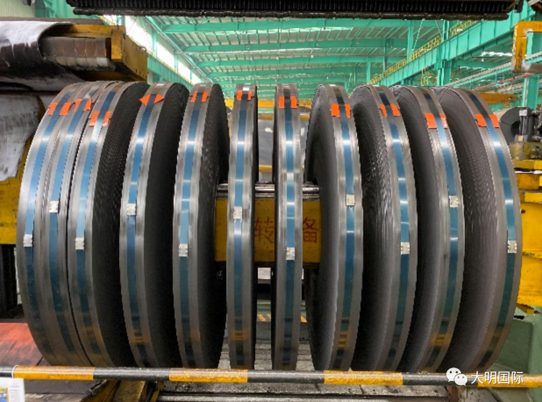 客户从前期合作过的大明天津加工中心处了解到大明靖江加工中心有相应的加工能力,且进口设备有保障。于是前来考察,并达成首次合作。此次加工首批4个钢卷,虽然纵剪产品规格较多、总量不大,FIMI 950 机组认真对待,最终加工质量获得客户现场的高度认可,为后期扩大加工合作打下了良好基础。