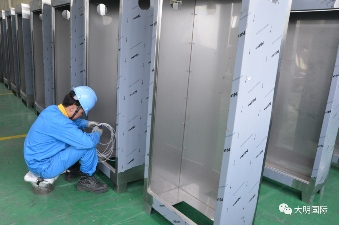 此次配套的产品共100多套,材料采用了拉丝表面,厚度1.8mm的304不锈钢。其加工要经过研磨、切割、去毛刺、打磨、折弯、焊接、去色、修磨、拉丝、装配、包装等工艺。客户对包装电箱的表面、色泽、拉丝均匀度、外观尺寸等均有明确的质量标准。在加工过程中,裁剪及研磨等工艺已由江苏大明加工中心完成,去毛刺、折弯、焊接等工序由大明精工完成。