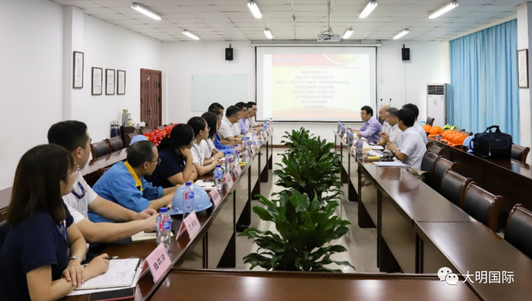 7月31日,無錫養楽多乳品有限公司副総経理绀野 正一様、工場長吉田 祐二様、副工場長丹代 贺人様を含め、大谷金属加工(苏州)有限公司副総西川 久志、高级经理王崗一行が来訪されました。大明重工総経理王健、大明重工副総経理羅智輝などが接待を行いました。