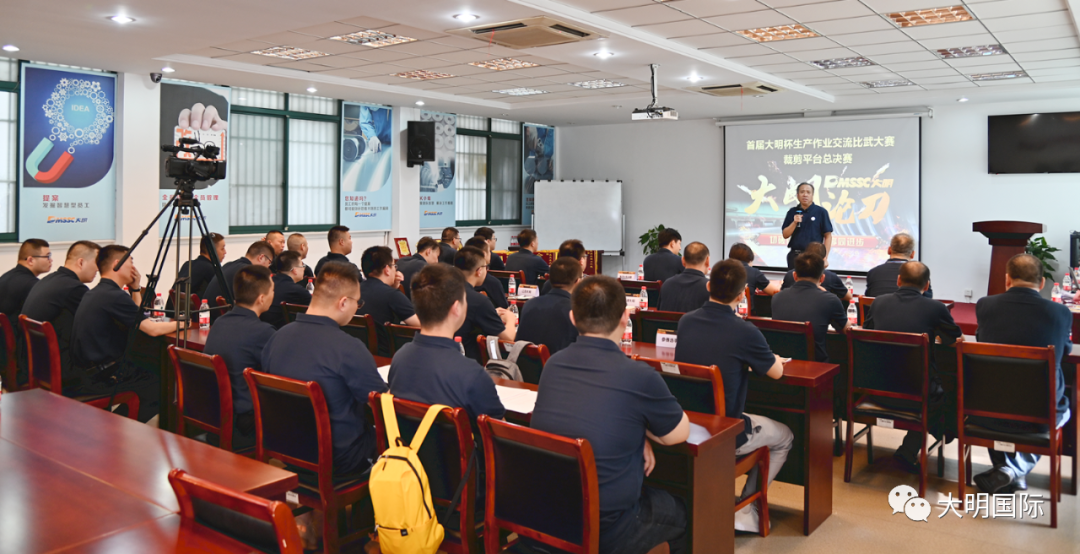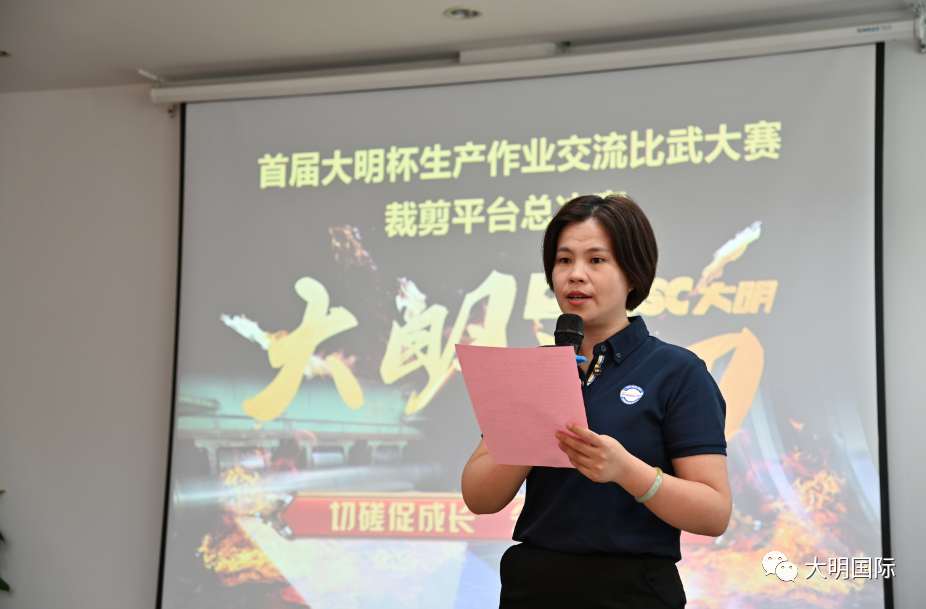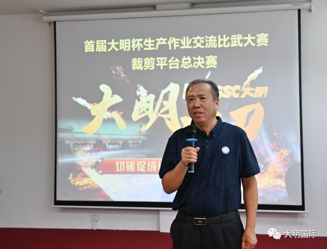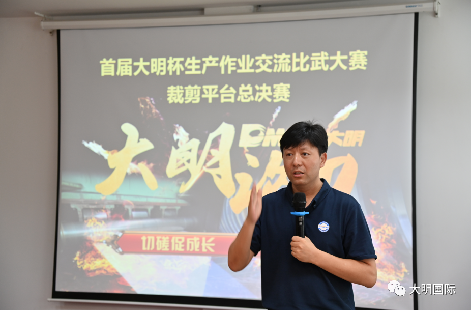 大明集团生产技术兼人事行政总监王小建在发言中指出,此次活动的目的就是传承、交流、学习、成长,参加总决赛既是自我展示,更代表了背后的团队,也是大明近二十年裁切经验的凝聚。希望通过此次系列活动的开展,能促进各加工中心全面发展、共同进步。最后,王总勉励参赛人员不光要会做,还要能总结、会传承,为公司的发展做出更大的贡献。