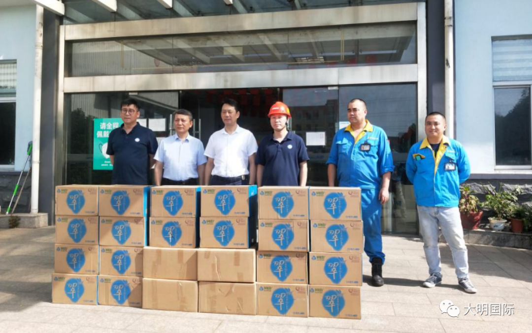 8月14日上午,无锡市惠山区前洲街道的人大主任沈宏和人武部长冯耀松深入到企业为一线员工送防暑降温物资,大明无锡加工中心生产技术部部长周文斌表示,将继续做好职工的防暑降温工作,确保职工的身体健康,同时认真制定防暑措施,让广大员工度过一个安全、健康的夏季。