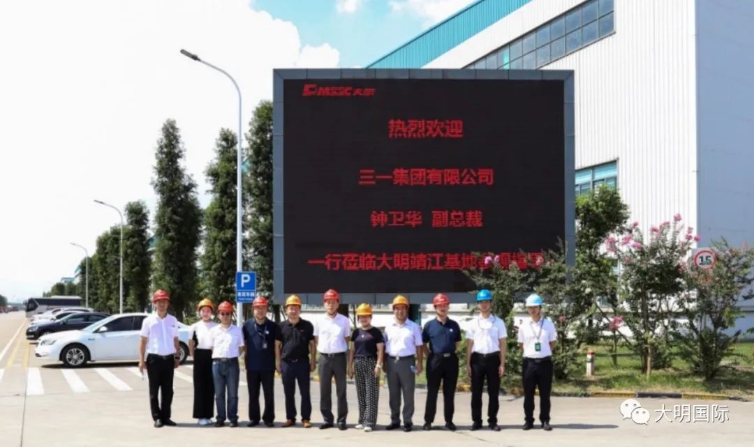 在周克明主席陪同下,钟卫华副总裁先后参观了大明靖江加工中心、大明重工和江苏大明加工中心、大明精工。参观过程中,钟卫华副总裁对于大明的发展速度、规模实力和质量管控等管理体系等给予了充分肯定,对大明在金属领域的综合配套能力和服务模式表示赞赏。在大明总部进行的座谈交流中,双方介绍了各自企业的运营情况及后期发展规划,并就工程机械行业相关内容进行了深入探讨。钟卫华副总裁表示三一集团一直聚焦客户需求,致力于打造“技术领先、品质优良”的产品,希望能与大明发挥各自的长处,合力为客户创造更多价值。周克明主席表示大明将充分发挥材料和加工配套服务优势,做好制造业配套服务,实现共赢发展。
