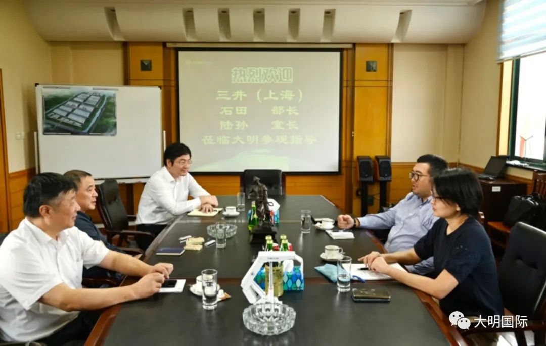 9月27日,三井(上海)石田洋二郎部长、陆孙室长一行来访大明。大明国际董事会主席周克明、大明重工总经理王健、大明重工容器事业部总经理邵星慧热情接待,并在大明集团总部进行座谈交流。