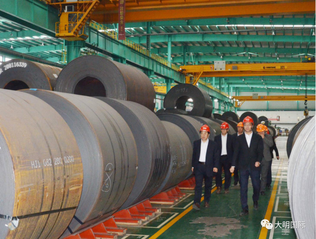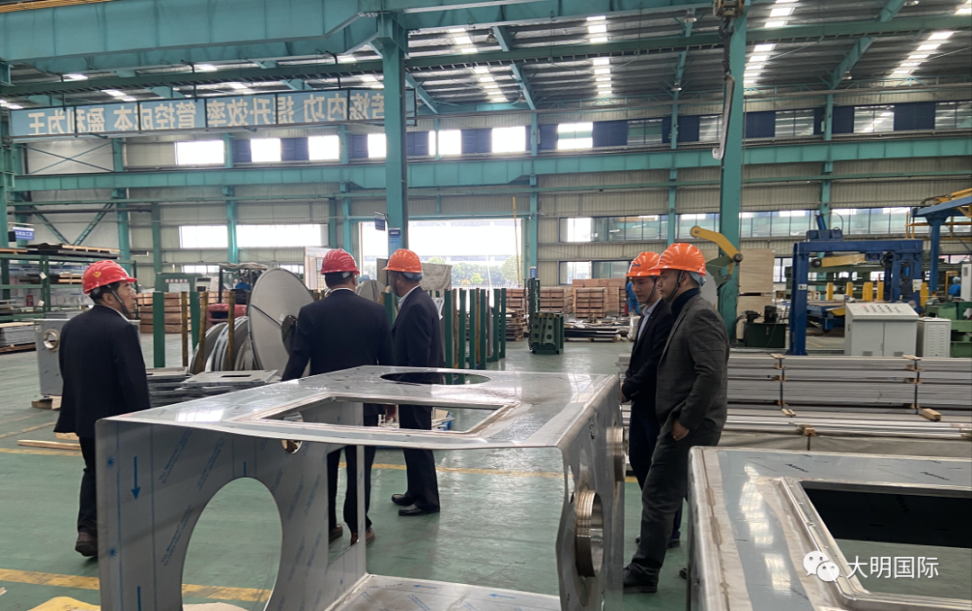 郑祥成总经理一行先后参观了大明靖江加工中心、大明重工、江苏大明和大明精工,对大明从优质钢铁材料到加工、制造配套的“一站式”服务模式进行了深入了解,对大明在金属加工领域的实力和能力表示非常赞赏。