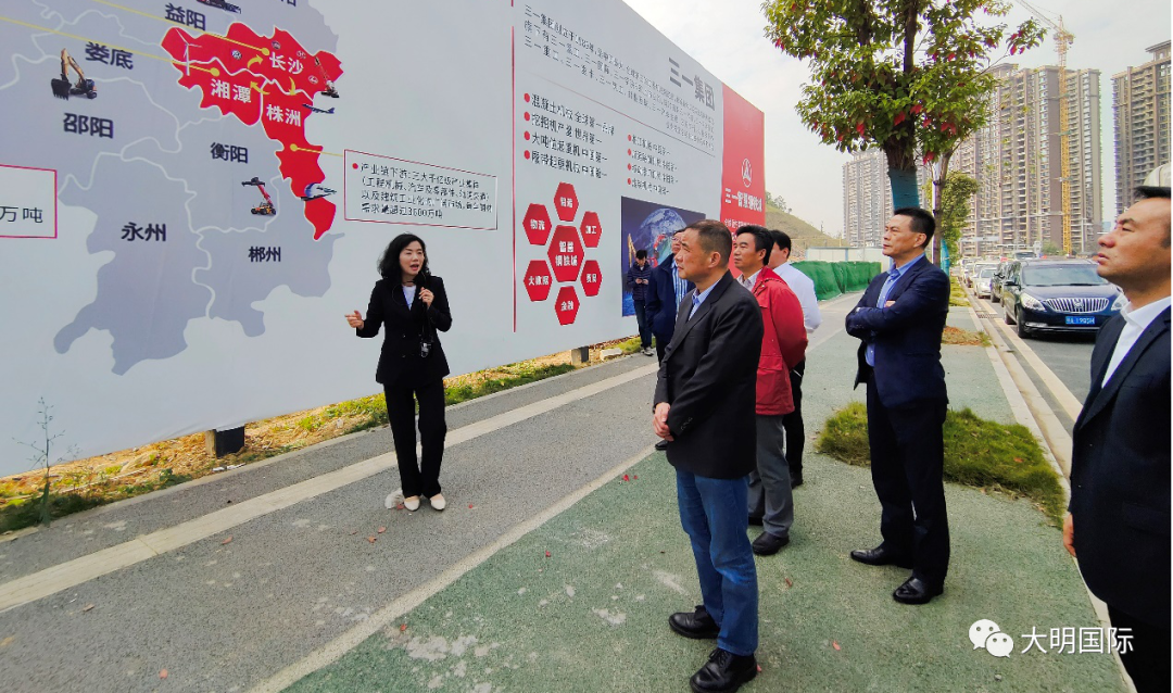 拜访期间,周克明主席一行还参观了三一重工株洲智慧产业园项目现场和金山科技工业园。株洲市荷塘区委书记邬凌云、区人民政府副区长陈柏文、金山科技工业园党工委书记朱福兴、工业园管委会科长唐丝思热情接待。双方进行了友好交流,邬凌云书记表达了对大明国际和三一重工强强联合、合作共赢的期待。